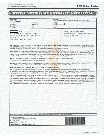 新晟客戶未成年人做主申移民美國(guó)I-526獲批信(申請(qǐng)年齡僅16歲)