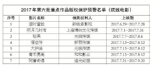 2017年度第六批重點(diǎn)作品版權(quán)保護(hù)預(yù)警名單發(fā)布